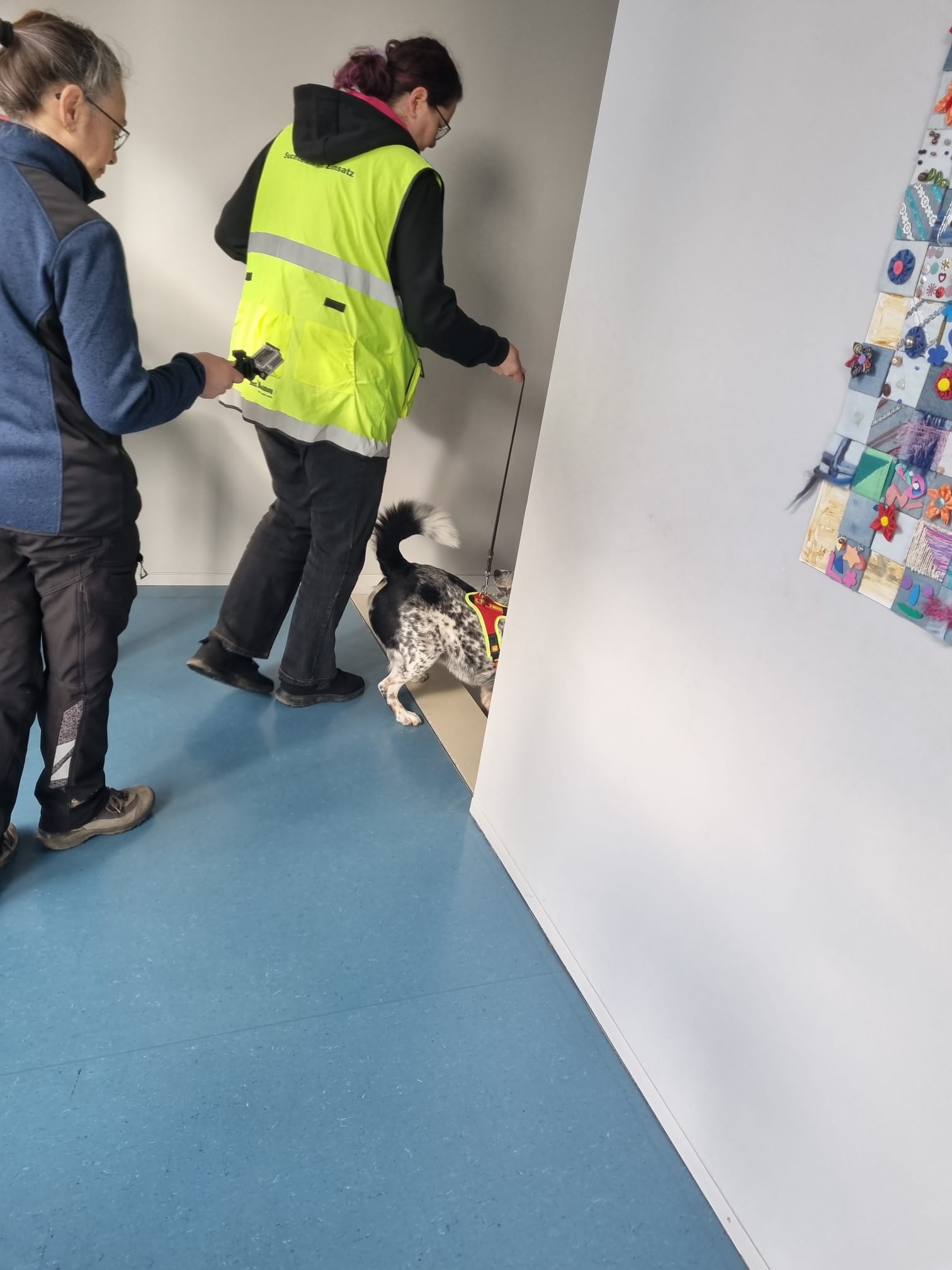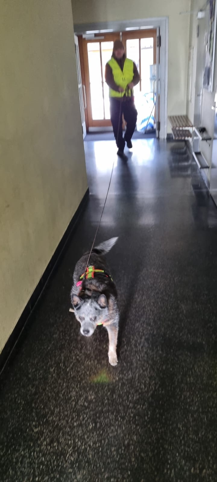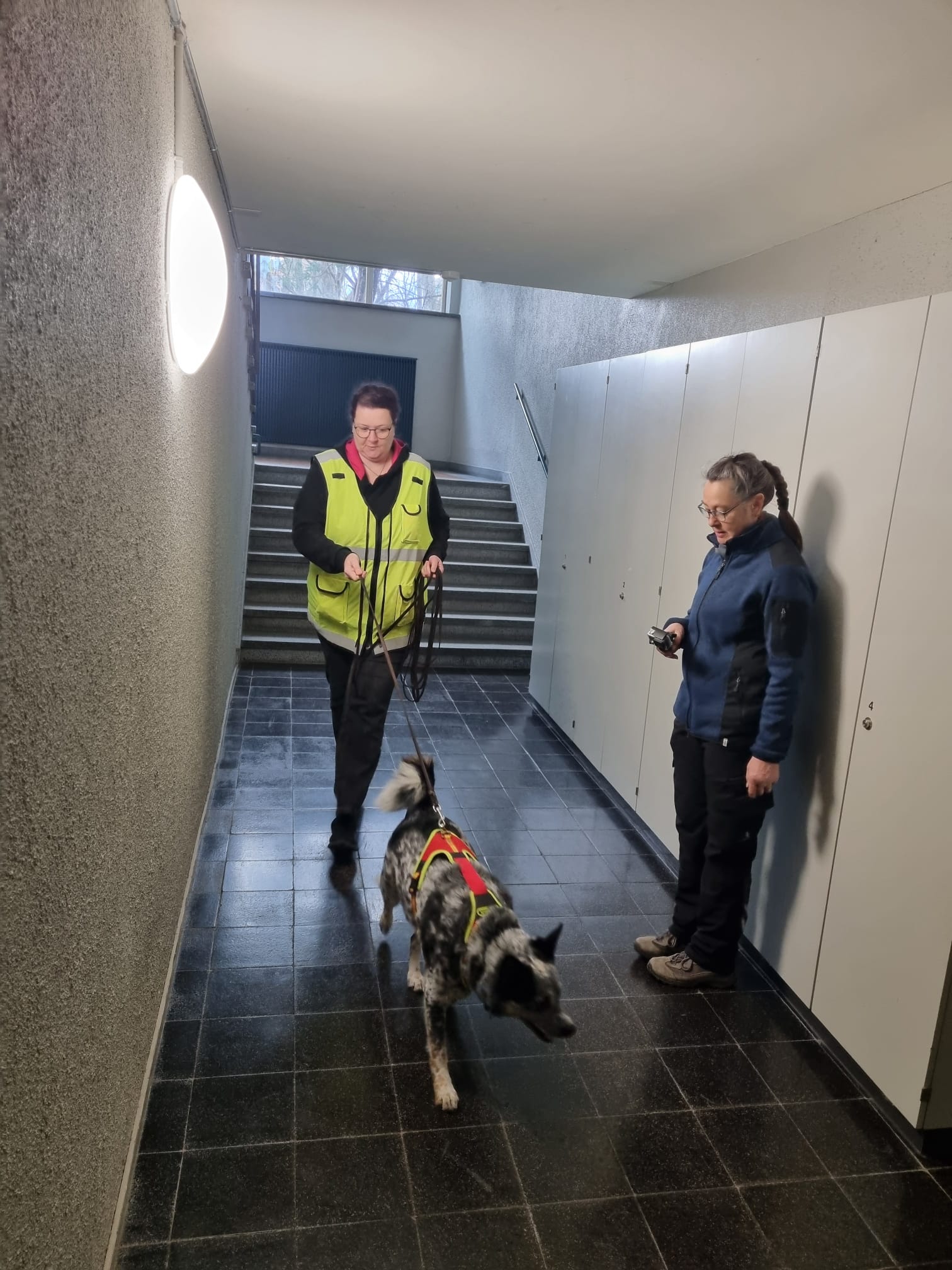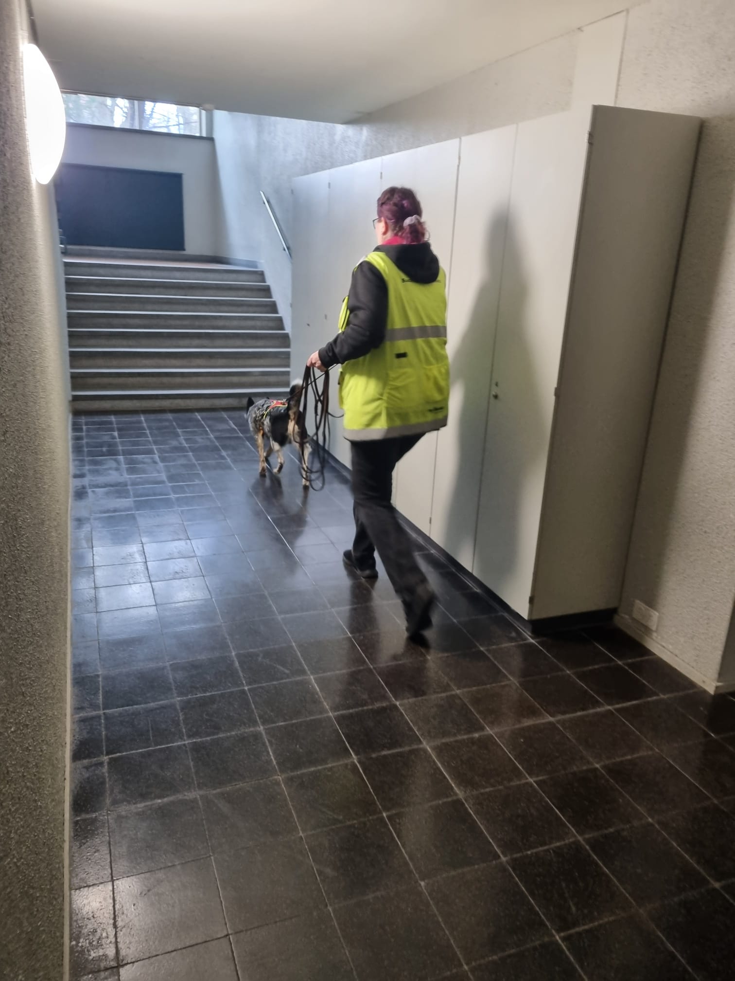 Schiebetüren, Lifte, Treppen, Stockwerke, und viele Gegenstände von den Schülern des Schulhause… Die Teams haben das Indoor Trailing hervorragend gemeistert und viele neue Erfahrungen gesammelt. Durch das Trailen an verschiedenen Standorten und Räumen werden die Teams immer wieder mit neuen Herausforderungen und Situationen beim Mantrailen konfrontiert. So wird das Training, weder für den Hund noch den Menschen langweilig und bleibt abwechslungsreich.